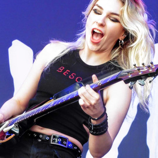 Anyway, I get to the main arena in time to catch The Last Internationale, and boy am I glad I did. All they way from New York and without a label (deliberately) they really kick some ass, helped by a very strong frontwoman in the shape of Delia Paz, who has a fantastic presence as well as a fantastic voice. They deliver a kick ass version of MC5’s ‘Kick Out The Jams’ but the highlight for me is ‘A Wanted Man’, a slower, powerful song that really hits home and sounds perfect. At the end of the set there’s nice surprise when Billy Sheehan comes on to play bass on ‘1968’. Last but not least.